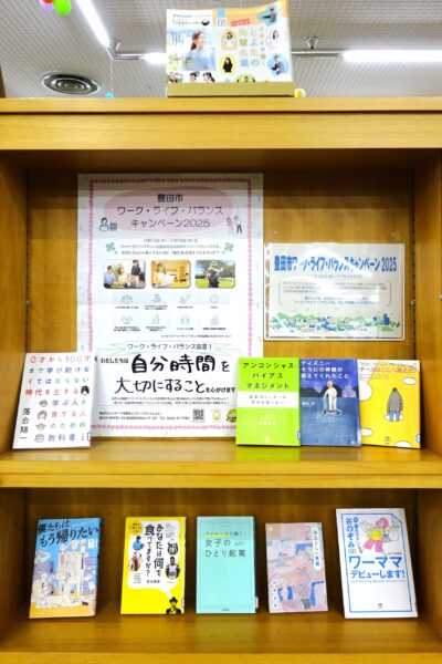 キラッ☆とよたでは、この期間に資料の展示や働き方に関する図書の紹介・貸出をしています。